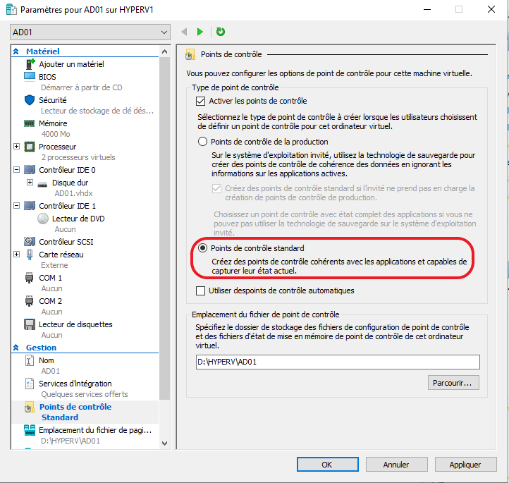 Mise a jour le 05/08/2025 > Correction Erreur 32768 ou 32770 Failed to create production checkpoint